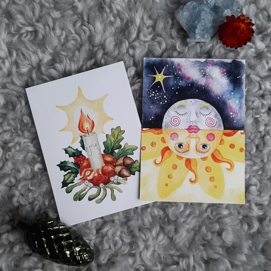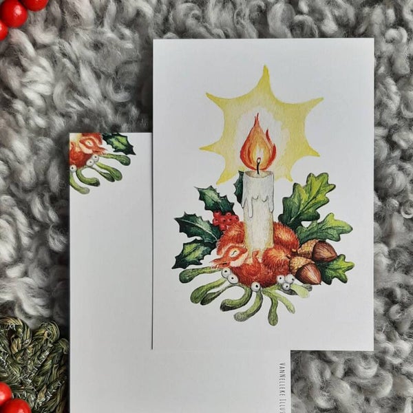 Kerstkaart Eekhoorntje met kaars (Yule)