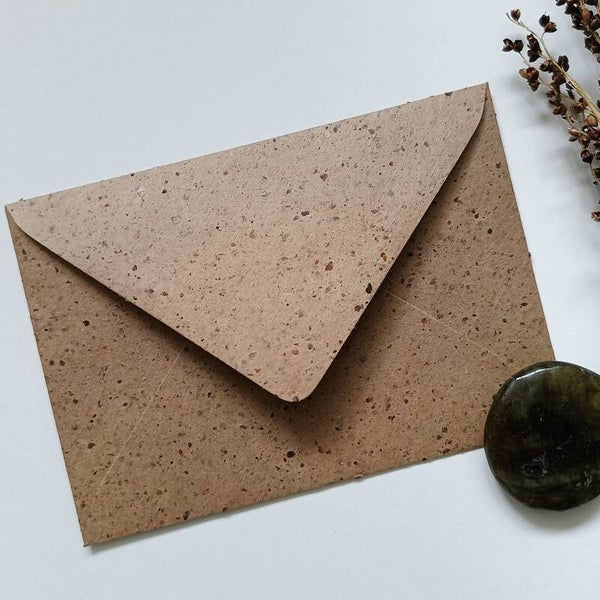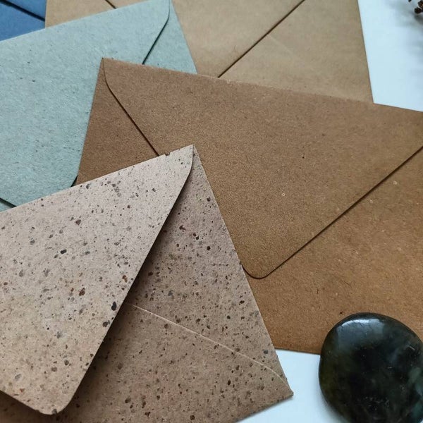 Deze enveloppen zijn stuk voor stuk duurzaam, bijvoorbeeld van 100% recycled papier, van papier met cacaodoppen of kraftpapier.