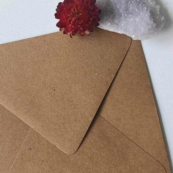 Deze kraftenvelop is super duurzaam en past bij de vierkante kaarten van 15x15cm.