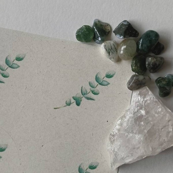 Deze (sluit)stickers met een illustratie van een eucalyptustakje zijn superleuk op of in je journal, op een cadeautje of natuurlijk om je envelop mooi mee te sluiten.