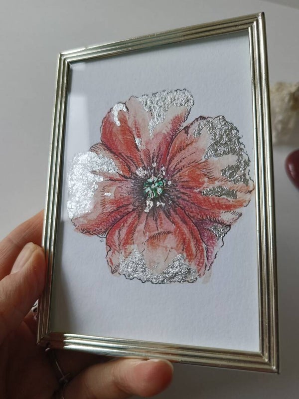 Superlief is deze kaart met klaproosillustratie mèt zilveren folietouch. Het zilver is met de hand aangebracht en daarna nog bewerkt met fineliner.