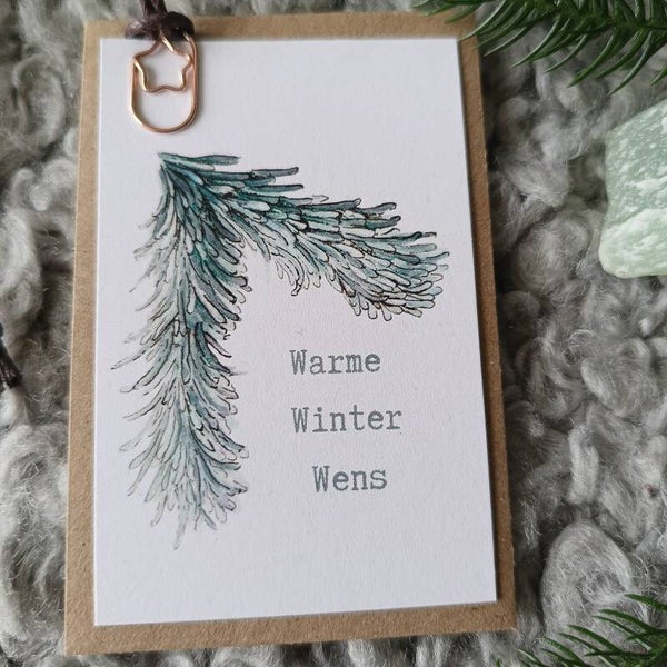 Ze is 55x85mm groot en gedrukt op duurzaam 100% recycled papier. Je krijgt er een mini-envelopje èn een touwtje met ster-paperclipje bij. Zo kun je haar multi-functioneel gebruiken aan een decembercadeautje, een flesje wijn of een bosje bloemen.