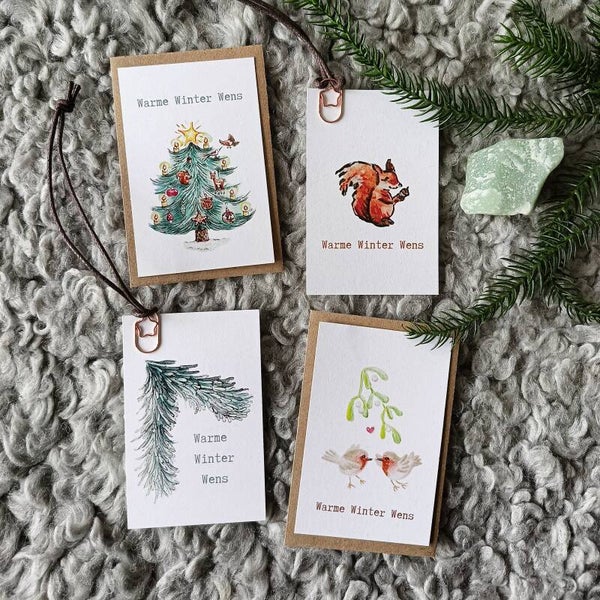 Ze is 55x85mm groot en gedrukt op duurzaam 100% recycled papier. Je krijgt er een mini-envelopje èn een touwtje met ster-paperclipje bij. Zo kun je haar multi-functioneel gebruiken aan een decembercadeautje, een flesje wijn of een bosje bloemen.
